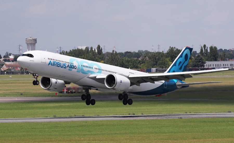 Foto de arquivo mostra um Airbus A330 NEO durante uma exibição de voo no 53º International Paris Air Show, realizado no Aeroporto Le Bourget, perto de Paris, França, no dia 17 de junho de 2019. (Xinhua/Gao Jing)