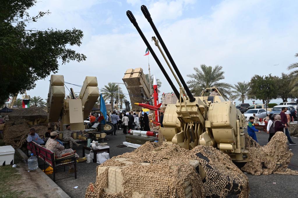 Veículos e equipamentos militares são vistos em um show durante as celebrações dos Dias Nacional e de Libertação do Kuwait na Cidade do Kuwait, Kuwait, no dia 25 de fevereiro de 2022. As celebrações foram realizadas na sexta-feira para marcar os Dias Nacional e de Libertação do Kuwait, que são comemorados anualmente nos dias 25 e 26 de fevereiro. (Foto por Asad/Xinhua)