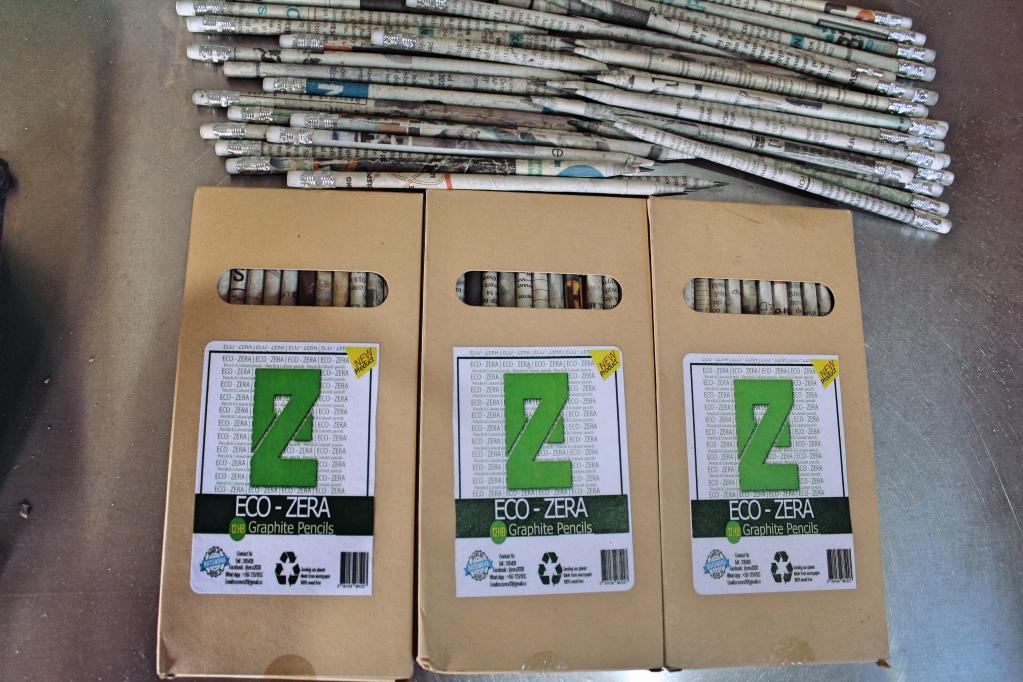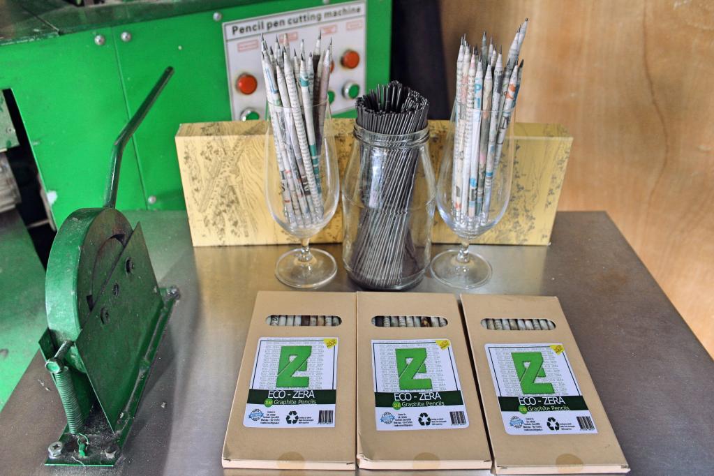 Desde que seu negócio de fabricação começou há apenas dois anos, a Eco Zera Pencils conseguiu utilizar aproximadamente 8.000 jornais.