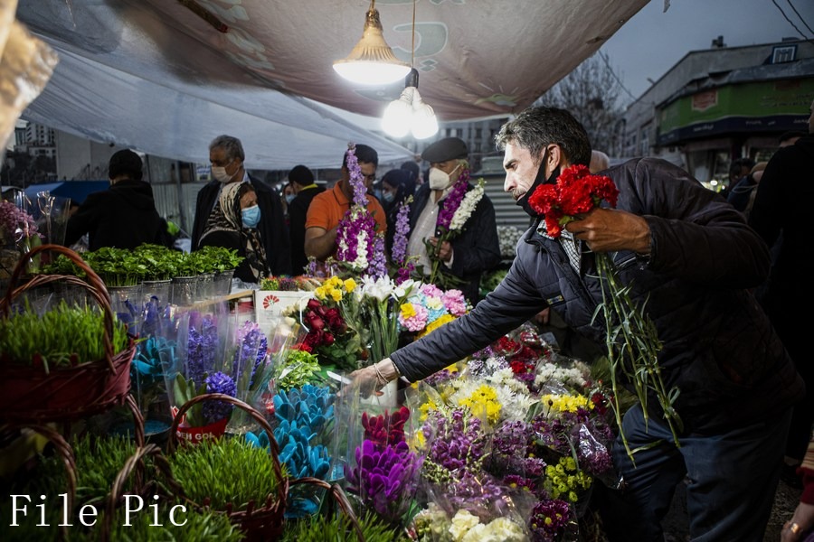 Homem compra flores em um bazar antes do Noruz, o Ano Novo iraniano, em Teerã, Irã, no dia 18 de março de 2021. (Foto por Ahmad Halabisaz/Xinhua)