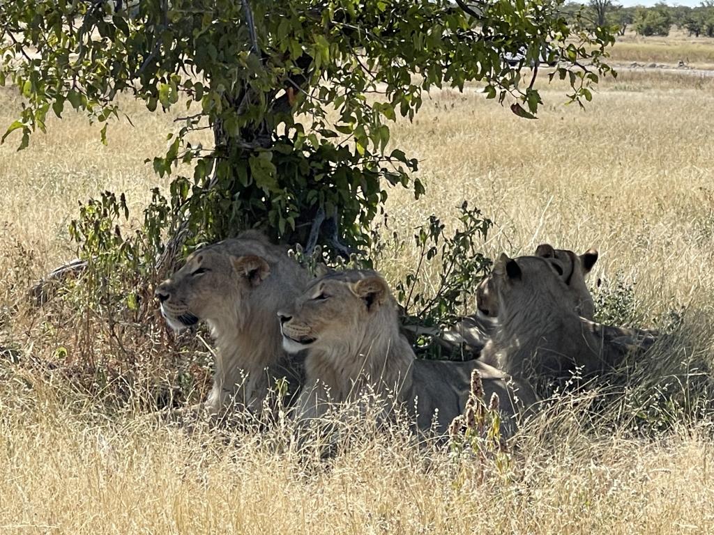 Foto tirada no dia 15 de maio de 2021 mostra leões no Parque Nacional Etosha, Namíbia. (Foto por Wang Peng/Xinhua)