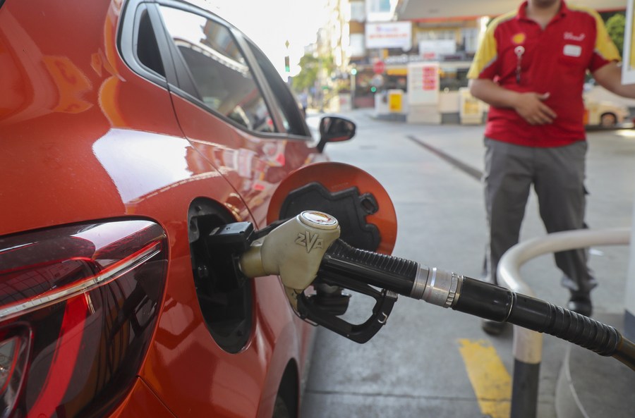 Veículo é abastecido em um posto de gasolina em Istambul, Turquia, no dia 11 de junho de 2022. Os consumidores turcos no sábado foram atingidos pela terceira rodada de aumento do preço do combustível em uma semana, pois uma moeda turca volátil afetou a economia, que depende em grande parte das importações. (Foto por Unal Cam/Xinhua)