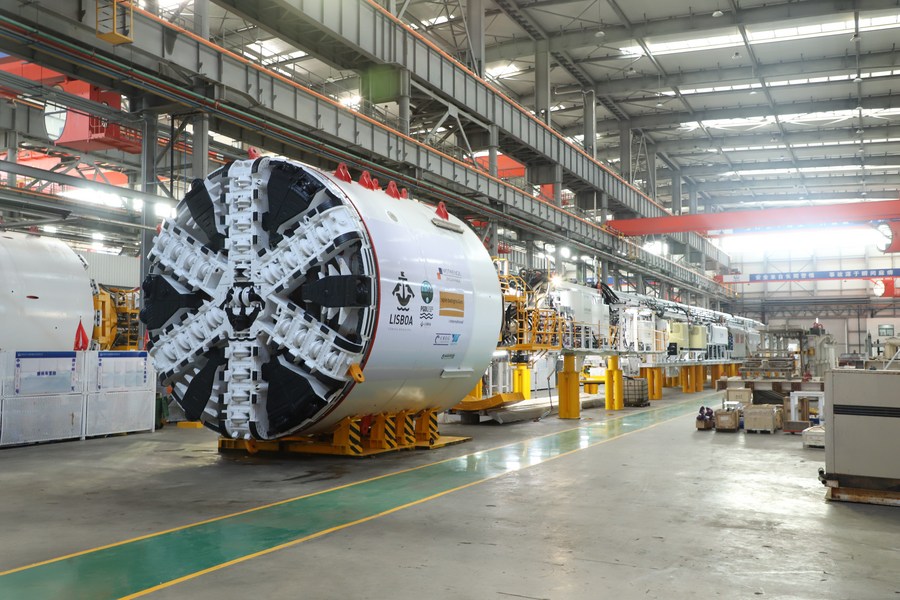 Foto tirada em 6 de abril de 2022 mostra a máquina perfuradora de túnel a ser entregue para Portugal. (Foto oferecida pelo CREG)