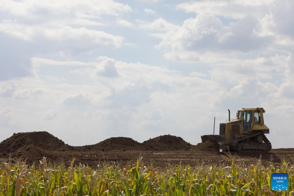 Escavadeira funcionando em um terreno onde a nova fábrica da CATL está programada para ser construída em Debrecen, Hungria, no dia 5 de setembro de 2022. A produtora chinesa de baterias Contemporary Amperex Technology Co., Limited (CATL) assinou um contrato imobiliário com a cidade de Debrecen na Hungria, na segunda-feira, marcando o lançamento oficial de sua segunda fábrica na Europa. (Foto por Átila Volgyi/Xinhua)