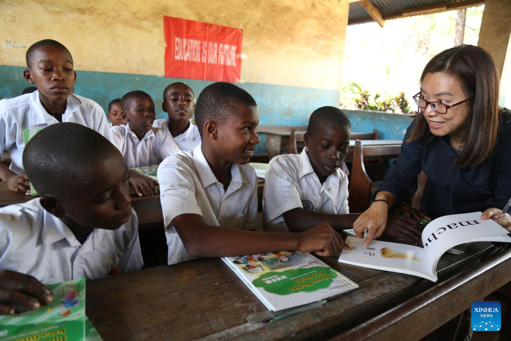 Zanzibar, Tanzânia, 3 ago (Xinhua) -- "Como vai, professora", uma saudação comum nas escolas da China, ficou cada vez mais popular entre os estudantes de Zanzibar, na Tanzânia, onde Li Xianyi, professora associada de língua e literatura chinesa, tem se voluntariado como professora de chinês por mais de 10 anos.
