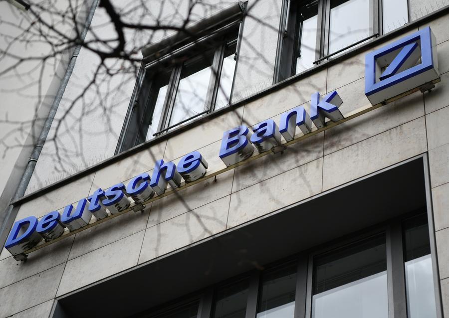 Foto tirada no dia 25 de março de 2023 mostra agência do Deutsche Bank (Banco Alemão) em Berlim, Alemanha. (Xinhua/Ren Pengfei)
