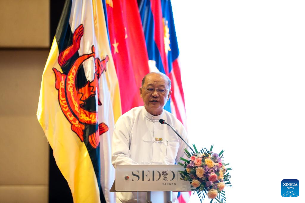 Jeng Phang Naw Taung, ministro da União para Hotelaria e Turismo e Esportes e Juventude de Mianmar, discursa no Fórum de Segurança e Proteção do Turismo entre a Associação das Nações do Sudeste Asiático (ASEAN) e a China, em Rangum, Mianmar, em 25 de agosto de 2025. O fórum foi organizado conjuntamente pelo ACC, pelo Ministério da Hotelaria e Turismo de Mianmar e pelo Centro Integrado de Cooperação em Segurança e Aplicação da Lei Lancang-Mekong (LMLECC, na sigla em inglês). O foco foi a construção de uma barreira de segurança sólida, o avanço do desenvolvimento e da prosperidade do turismo regional e a busca por medidas práticas para enfrentar os desafios. (Foto por Myo Kyaw Soe/Xinhua)
