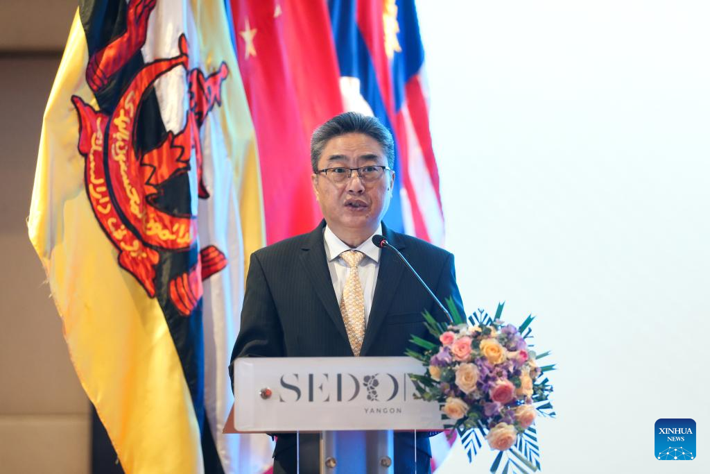O secretário-geral do Centro Associação das Nações do Sudeste Asiático (ASEAN)-China (ACC, na sigla em inglês), Shi Zhongjun, discursa no Fórum de Segurança e Proteção do Turismo ASEAN-China em Rangum, Mianmar, em 25 de agosto de 2025. O fórum foi organizado conjuntamente pelo ACC, pelo Ministério da Hotelaria e Turismo de Mianmar e pelo Centro Integrado de Cooperação em Segurança e Aplicação da Lei Lancang-Mekong (LMLECC, na sigla em inglês). O foco foi a construção de uma barreira de segurança sólida, o avanço do desenvolvimento e da prosperidade do turismo regional e a busca por medidas práticas para enfrentar os desafios. (Foto por Myo Kyaw Soe/Xinhua)