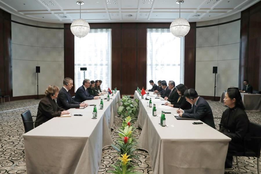 Durante a conferência de segurança, Wang se reuniu com o presidente sérvio Aleksandar Vucic; o chanceler alemão Friedrich Merz; o ministro das Relações Exteriores da Ucrânia Andrii Sybiha; o ministro das Relações Exteriores da Argentina Pablo Quirno; a ministra das Relações Exteriores da Áustria Beate Meinl-Reisinger; a secretária de Relações Exteriores do Reino Unido Yvette Cooper; o ministro das Relações Exteriores da Alemanha Johann Wadephul; o ministro das Relações Exteriores da França Jean-Noel Barrot; o ministro das Relações Exteriores da Noruega Espen Barth Eide e o vice-primeiro-ministro e ministro das Relações Exteriores da República Tcheca Petr Macinka.