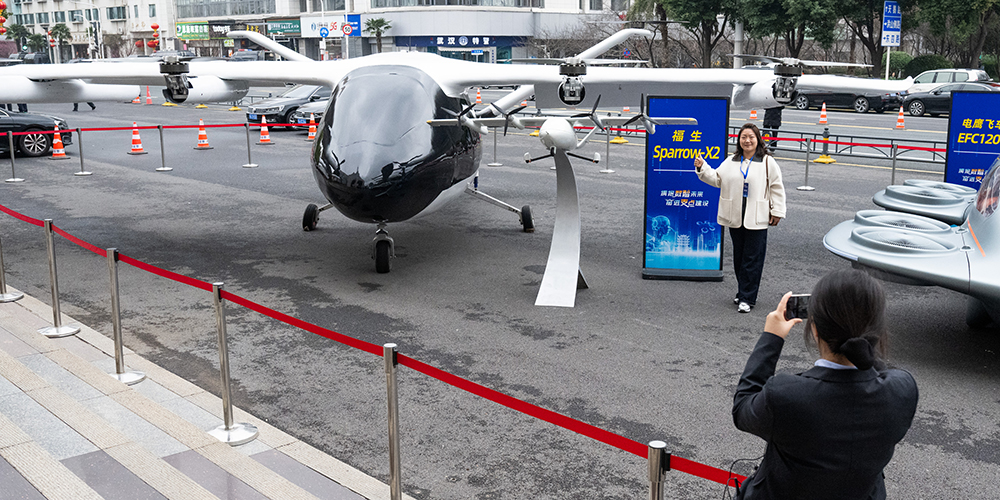 Aeronave elétrica de decolagem e pouso vertical e robôs humanóides fazem estreia em Wuhan, na província chinesa de Hubei