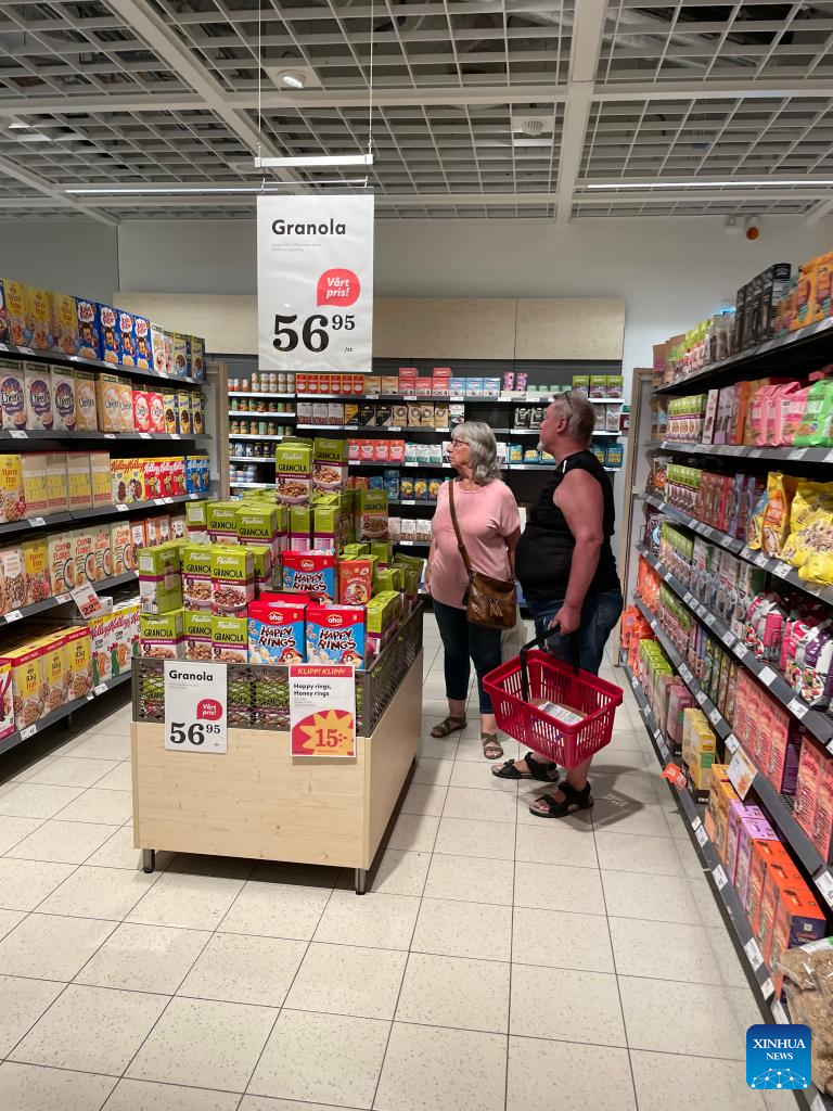 Clientes fazem compras em um supermercado em Estocolmo, Suécia, no dia 14 de julho de 2022. (Xinhua/Fu Yiming)