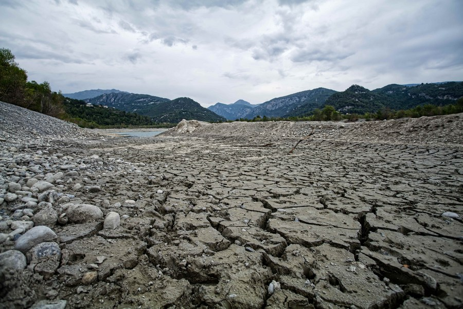 Foto tirada no dia 17 de agosto de 2022 mostra uma vista do lago artificial Broc perto de Nice, Alpes-Maritimes, sul da França. (Foto por Serge Haouzi/Xinhua)