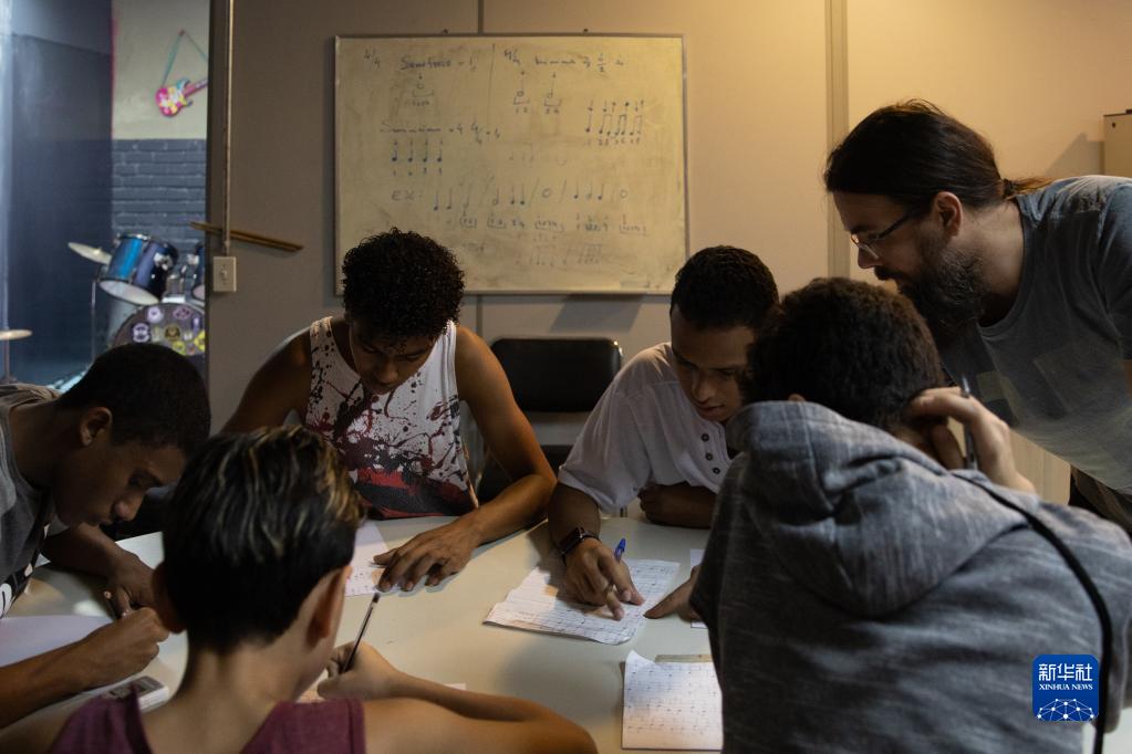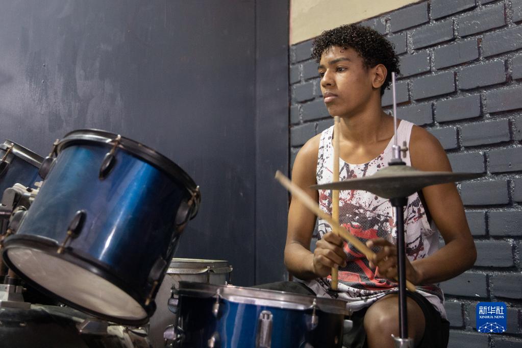 Rio de Janeiro, 28 ago (Xinhua) -- Em um prédio da Cidade de Deus, bairro localizado na zona oeste do Rio de Janeiro, Márcio dos Santos, um menino de 15 anos, está praticando bateria sob a orientação do músico e professor voluntário Antônio da Silva.