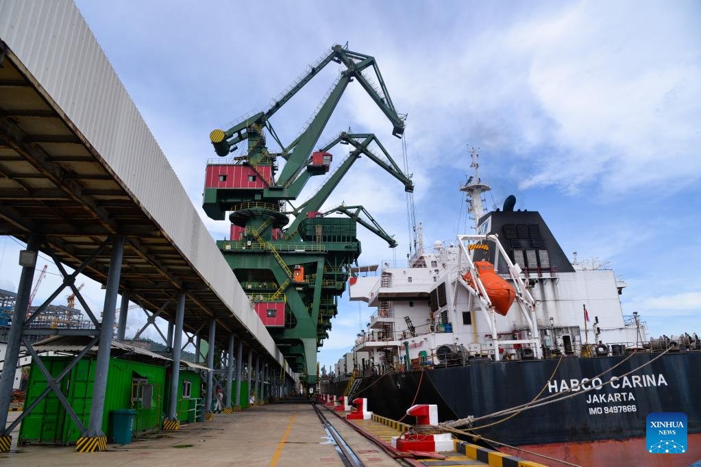 Foto tirada em 25 de setembro de 2022 mostra o porto do Parque Industrial de Weda Bay, em Maluku do Norte, Indonésia.(Xinhua/Xu Qin)