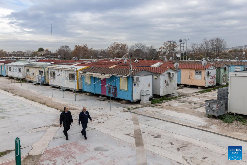 Pessoas caminham no campo de Eleonas em Atenas, Grécia, em 12 de dezembro de 2022. (Foto por Lefteris Partsalis/Xinhua)