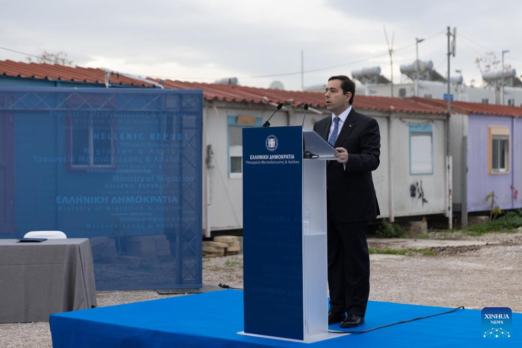 O ministro grego de Migração e Asilo, Notis Mitarachi, fala em um evento no campo de Eleonas em Atenas, Grécia, em 12 de dezembro de 2022. (Foto por Lefteris Partsalis/Xinhua)