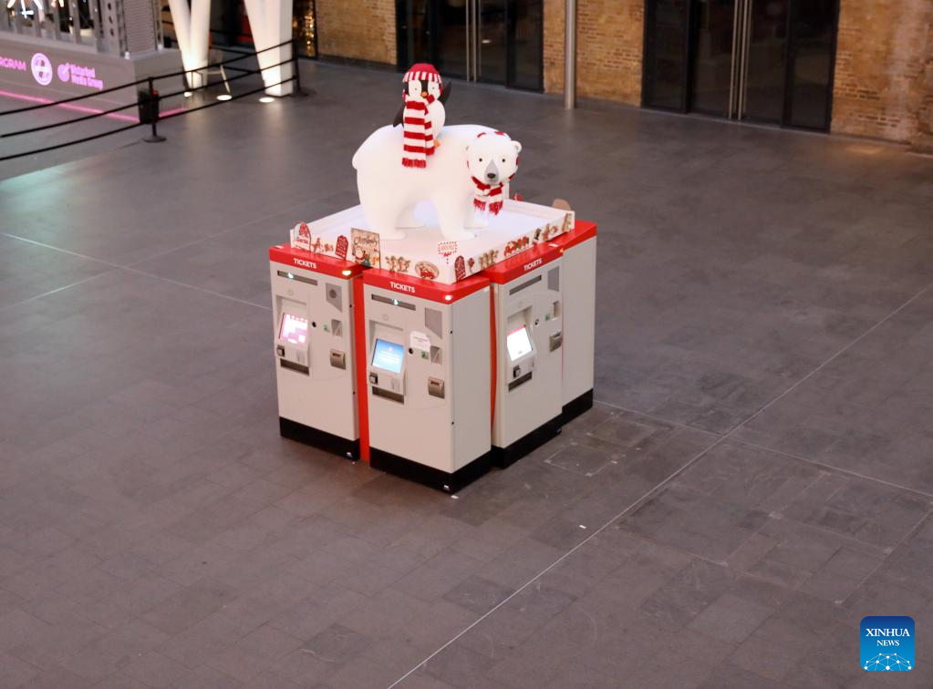 Máquinas de bilhetes de autoatendimento são vistas na Estação Ferroviária King's Cross em Londres, Grã-Bretanha, em 17 de dezembro de 2022. O Reino Unido enfrenta semanas de greves massivas durante a temporada de Natal por trabalhadores dos correios e transportes, enfermeiras e guardas de fronteira. Uma onda de ações industriais começou na terça-feira, com mais de 40.000 membros do Sindicato Nacional dos Trabalhadores Ferroviários, Marítimos e de Transportes (RMT, em inglês) parando por 48 horas. Mais três semanas de interrupção estão programadas para acontecer. (Xinhua/Li Ying)