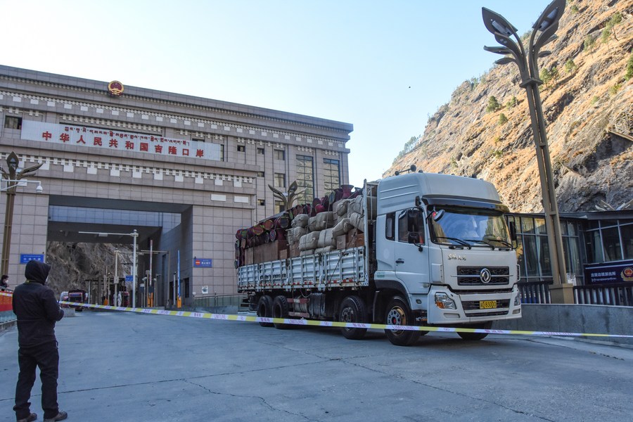 Lhasa, 30 dez (Xinhua) -- O porto de Gyirong na Região Autônoma do Tibet, no sudoeste da China, a maior passagem fronteiriça terrestre entre a China e o Nepal, retomou o comércio bidirecional.