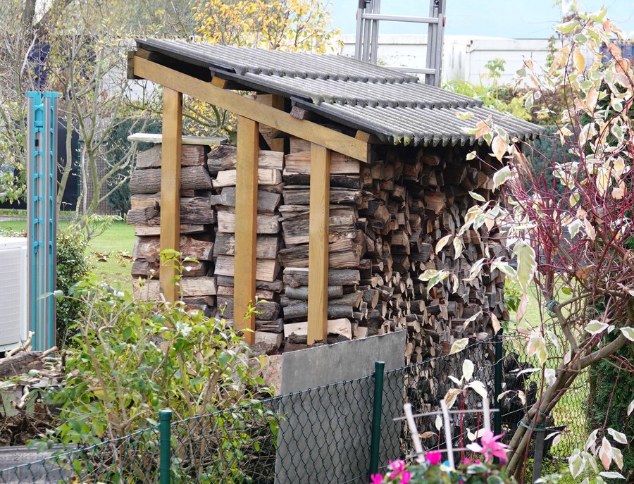 Lenha armazenada do lado de fora de uma casa em Berlim, capital da Alemanha, no dia 1º de novembro de 2022. (Xinhua/Ren Pengfei)