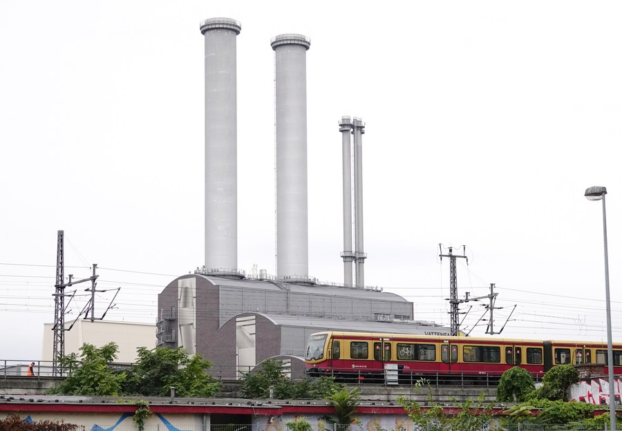 Trem passa por uma usina termelétrica em Berlim, Alemanha, no dia 8 de setembro de 2022. (Xinhua/Ren Pengfei)