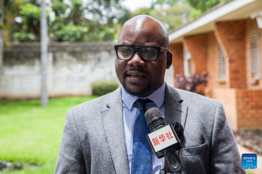 Nshamba Muzungu, gerente de relações públicas da Companhia de Água e Esgotos de Lusaca, é entrevistado pela Xinhua em Lusaca, Zâmbia, em 10 de janeiro de 2023. O projeto de abastecimento de água em grande escala de Kafue, cofinanciado pelo Banco de Exportação e Importação da China e pelo governo da Zâmbia, ajudou a melhorar o abastecimento de água e saneamento para cerca de 500.000 pessoas na capital da Zâmbia. (Xinhua/Martin Mbangweta)