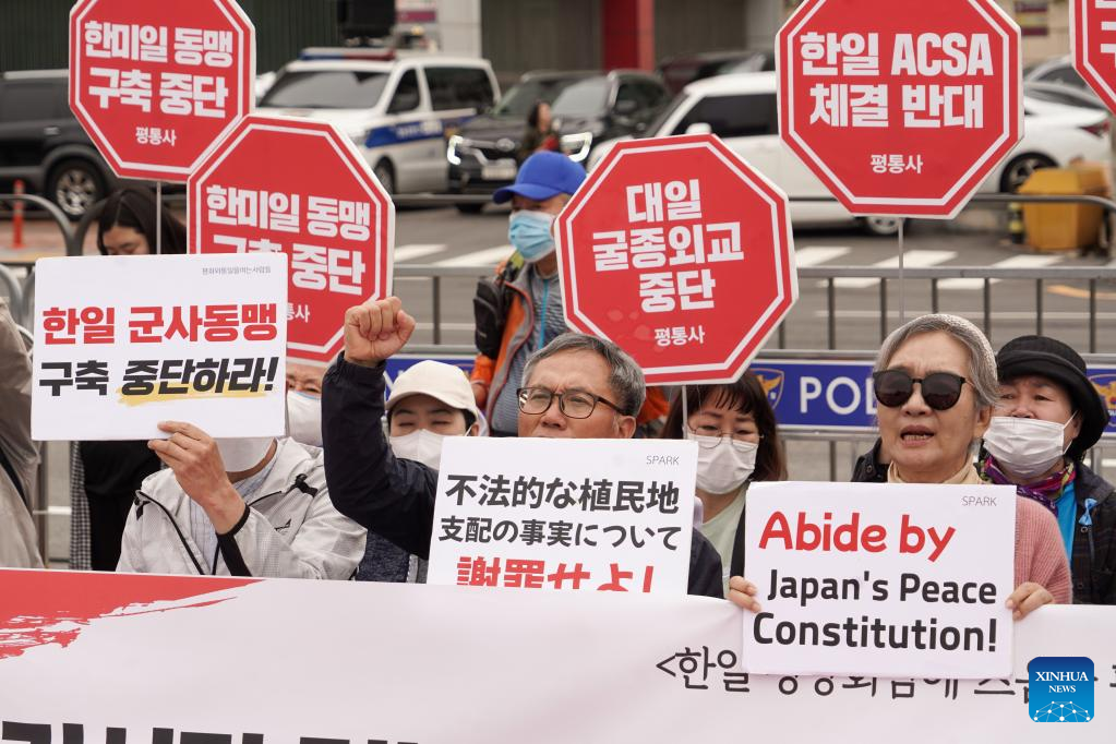 Seul, 7 mai (Xinhua) -- Várias organizações sul-coreanas se reuniram neste domingo para protestar contra a visita do primeiro-ministro japonês Fumio Kishida à Coreia do Sul.