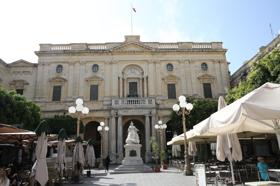 Foto tirada em 23 de maio de 2023 mostra um prédio da Biblioteca Nacional em Valeta, Malta.(Xinhua/Chen Wenxian)