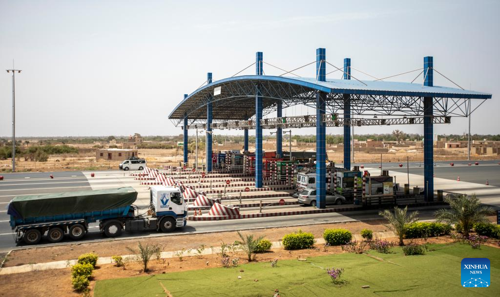 Foto tirada em 13 de maio de 2023 mostra um posto de pedágio da rodovia Ila-Touba perto de Thies, Senegal. (Xinhua/Li Yahui)