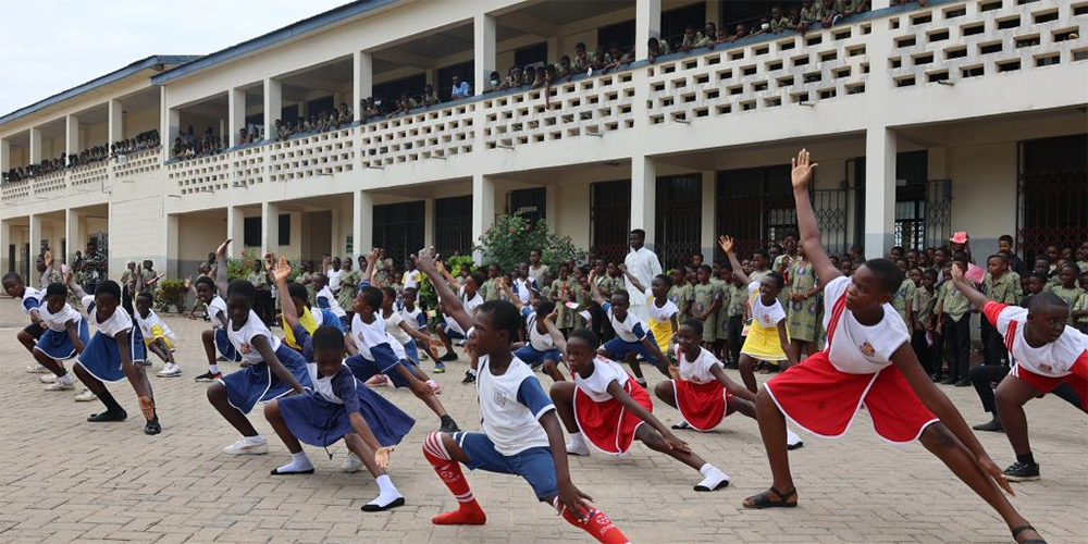 A delegação foi recebida com uma apresentação de artes marciais chinesas e ginástica junto com apresentações culturais ganenses. As crianças estavam muito animadas e comprometidas com o aprendizado da língua chinesa como parte do currículo acadêmico ao cumprimentarem em chinês a delegação.