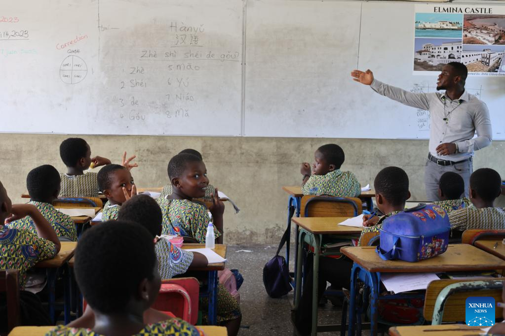 Acra, 17 jun (Xinhua) -- É uma sexta-feira comum em Cape Coast, capital da região central de Gana, que faz fronteira com o Oceano Atlântico. Em uma sala de aula da Escola de Ensino Fundamental da Universidade de Cape Coast (UCC), os estudantes têm aula de chinês com muita empolgação.