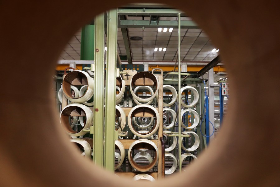 Foto tirada no dia 26 de junho de 2023 mostra produtos de fibra de vidro da Jushi Egypt em Suez, Egito. (Xinhua/Wang Dongzhen)