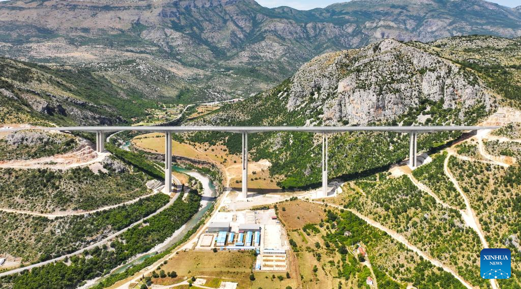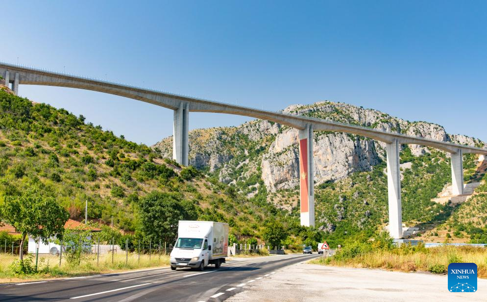 Foto tirada no dia 24 de julho de 2023 mostra ponte na rodovia Bar-Boljare em Montenegro. (Foto por Wang Wei/Xinhua)