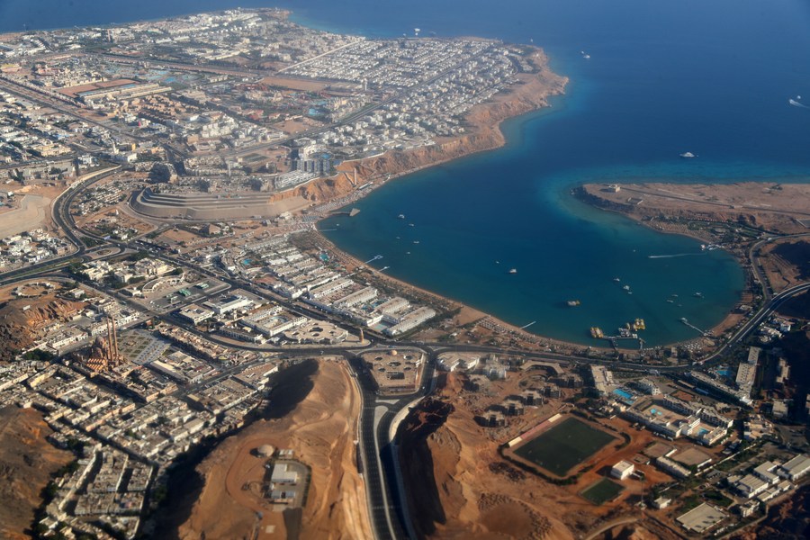 Foto aérea tirada no dia 5 de novembro de 2022 mostra vista de Sharm El-Sheikh, Egito. (Xinhua/Sui Xiankai)