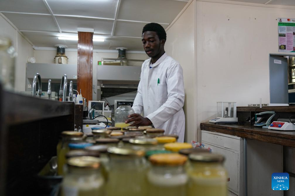 Um estudante de pós-graduação queniano trabalha no Laboratório Conjunto China-Quênia do Cinturão e Rota sobre Biologia Molecular de Plantas Agrícolas na Universidade Egerton no Condado de Nakuru, Quênia, no dia 18 de setembro de 2023. (Xinhua/Han Xu)