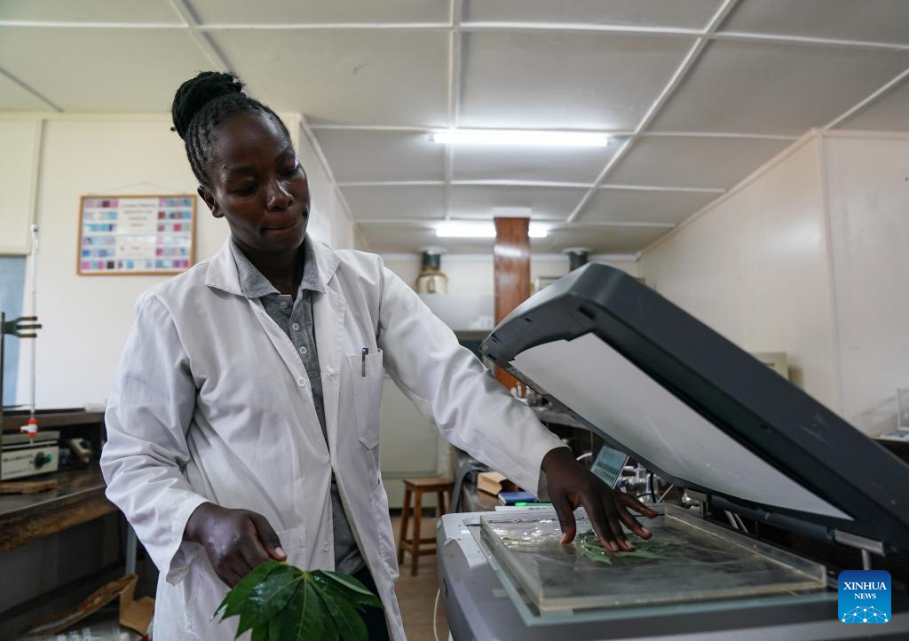 Uma estudante de pós-graduação queniana trabalha no Laboratório Conjunto China-Quênia do Cinturão e Rota sobre Biologia Molecular de Plantas Agrícolas na Universidade Egerton no Condado de Nakuru, Quênia, no dia 18 de setembro de 2023. (Xinhua/Han Xu)