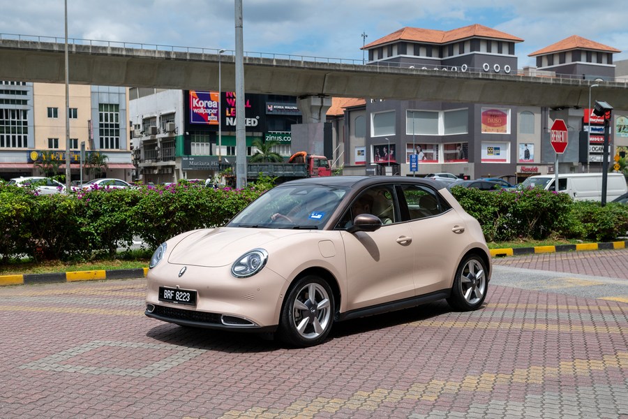 Cliente faz test drive em veículo elétrico Ora Good Cat, modelo da montadora chinesa Great Wall Motor (GWM), em Kuala Lumpur, Malásia, no dia 17 de fevereiro de 2023. (Foto por Chong Voon Chung/Xinhua)
