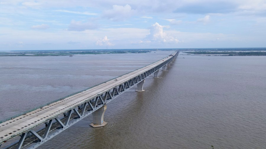Daca, 11 out (Xinhua) -- Quando o primeiro trem do Projeto de Ligação Ferroviária da Ponte Padma (PBRLP, em inglês), transportando a primeira-ministra de Bangladesh, Sheikh Hasina, partiu na terça-feira de uma nova estação nos arredores da capital, Daca, às 12h59, horário local, a primeira seção da maior ferrovia de Bangladesh foi formalmente inaugurada.