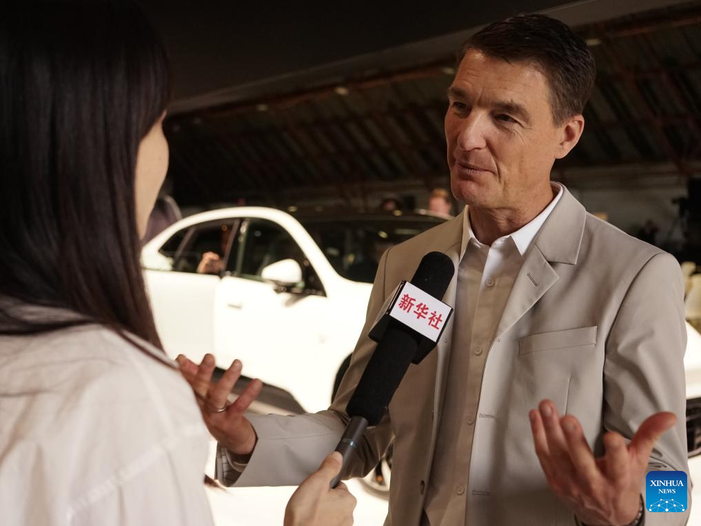 CEO da Polestar, Thomas Ingenlath, fala durante entrevista em evento de demonstração de inovação da Polestar em Los Angeles, Estados Unidos, no dia 9 de novembro de 2023. A fabricante sueca de veículos elétricos (VEs) Polestar deseja aumentar a cooperação tecnológica com a China e buscar maiores oportunidades no mercado chinês, disse em entrevista à Xinhua na quinta-feira o CEO da Polestar, Thomas Ingenlath. (Foto por Zeng Hui/Xinhua)
