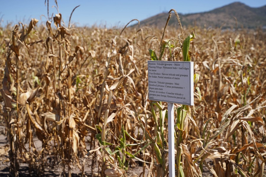 Uma fazenda de milho na sede do Centro Internacional de Melhoramento de Milho e Trigo (CIMMYT, na sigla em espanhol), em 21 de novembro de 2022. (Xinhua/ Zhu Yubo)