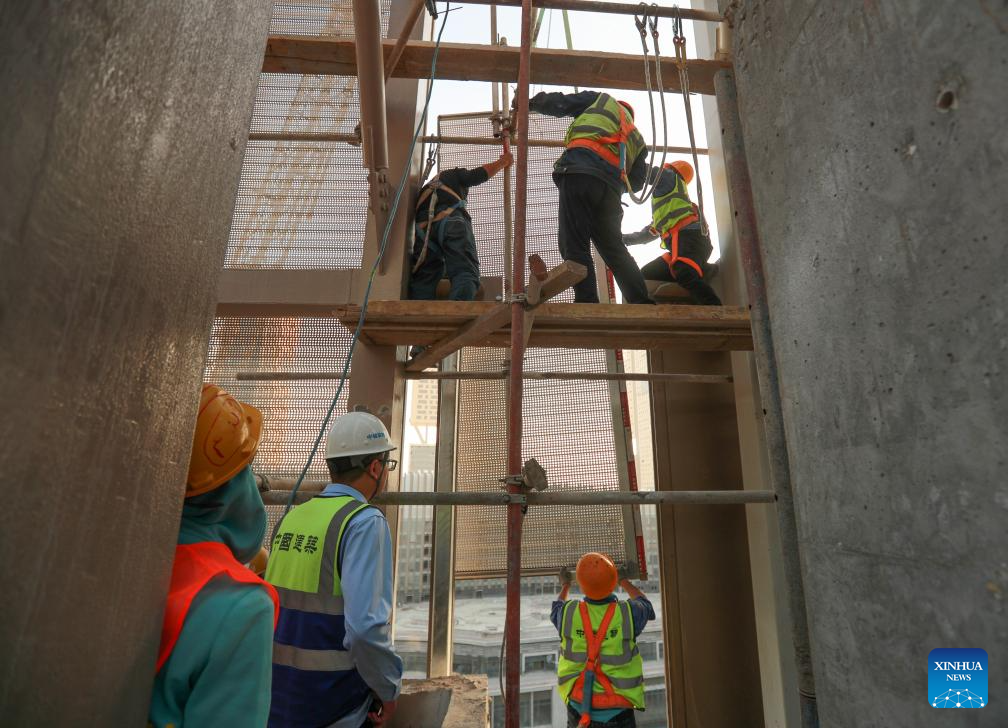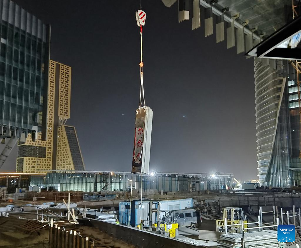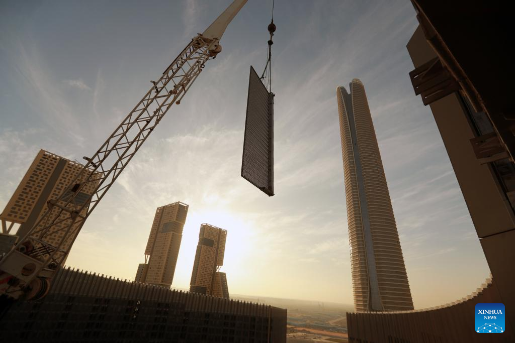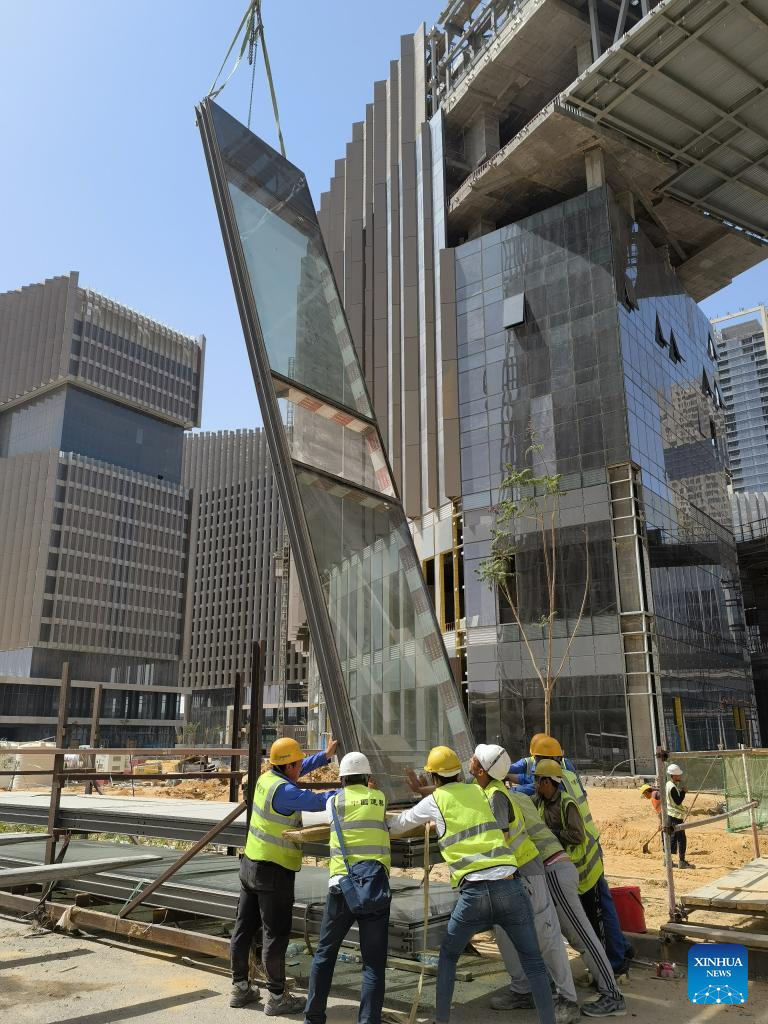 Na primavera do ano que vem, todas as fachadas do DCC estarão completamente instaladas. O DCC continuará espalhando a glória da amizade entre China e Egito, servindo como símbolo duradouro da Iniciativa do Cinturão e Rota. (Li Binghong/Filial egípcia da China State Construction Engineering Corporation/Divulgação via Xinhua)