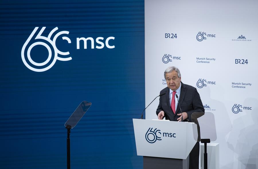 O secretário-geral das Nações Unidas, António Guterres, fala durante a abertura da 60ª Conferência de Segurança de Munique (MSC, em inglês) em Munique, Alemanha, em 16 de fevereiro de 2024. (Xinhua/Zhang Fan)