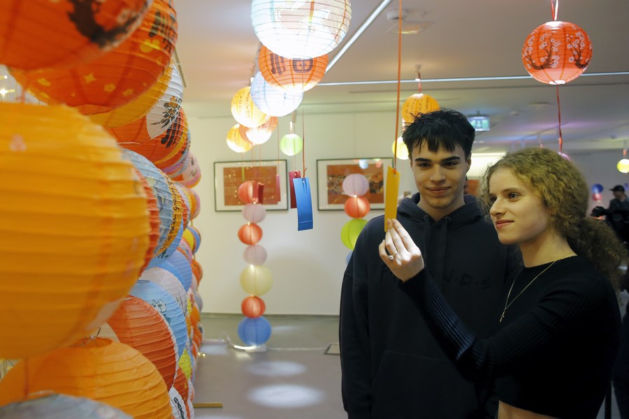 Pessoas participam de um evento para celebrar o Festival das Lanternas no Centro Cultural Chinês em Bucareste, Romênia, em 23 de fevereiro de 2024. (Foto por Cristian Cristel/Xinhua)