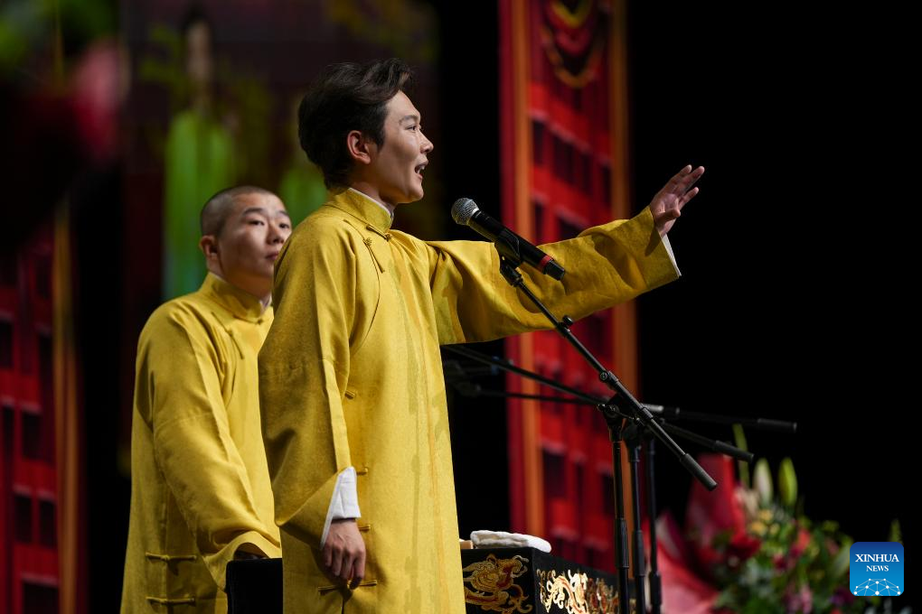 Junto com Guo e seu parceiro Yu Qian, alguns comediantes do De Yun She Performance Group apresentaram Xiangsheng, ou conversa cruzada, com piadas sobre anedotas da vida e episódios tradicionais de Xiangsheng.