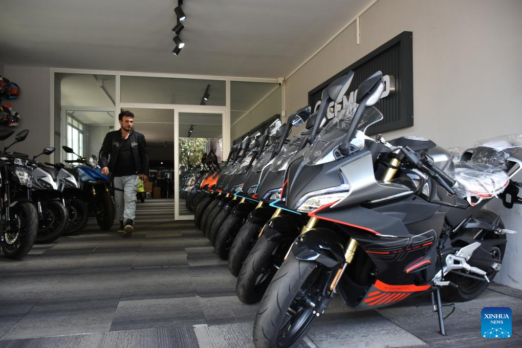 Istambul, 24 mai (Xinhua) -- Localizada ao lado de uma avenida movimentada no lado asiático de Istambul, uma galeria de motocicletas mostra uma notável coleção de marcas chinesas, atraindo a atenção de pilotos experientes e de entusiastas curiosos.