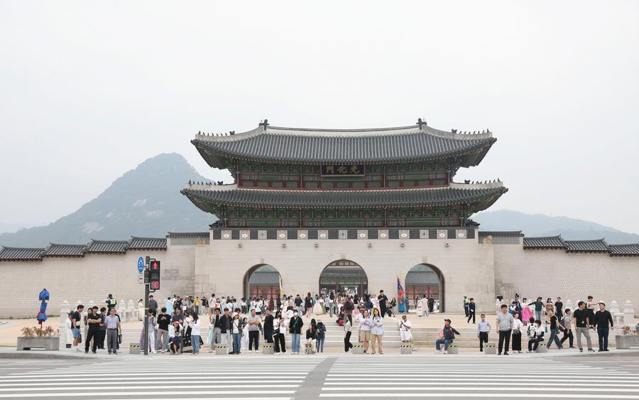 Visitantes na Praça Gwanghwamun em Seul, Coreia do Sul, no dia 24 de maio de 2024. (Xinhua/Yao Qilin)