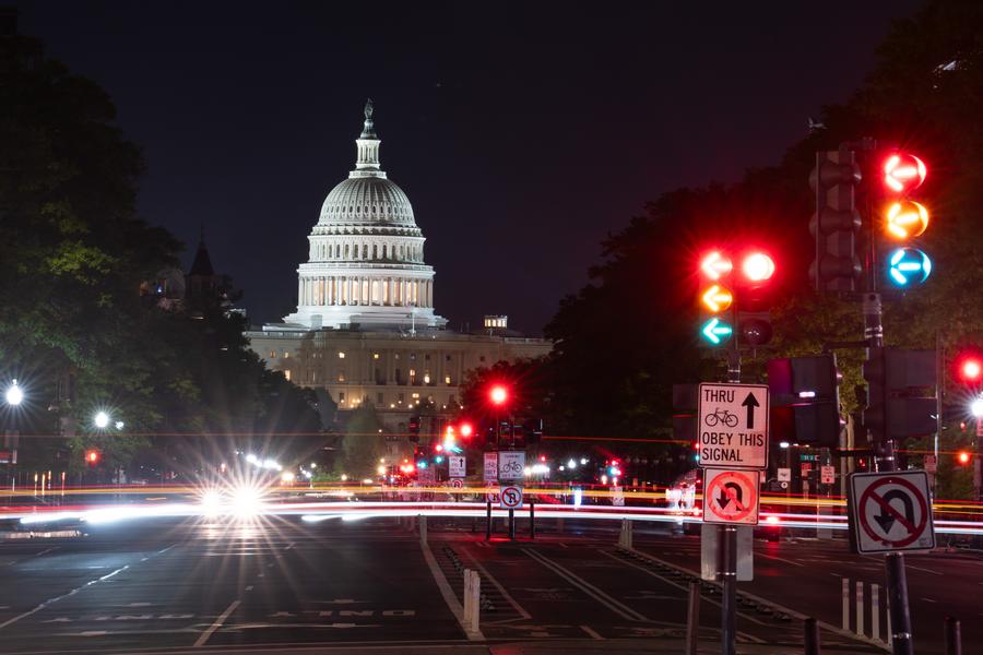 Foto tirada no dia 23 de abril de 2024 mostra edifício do Capitólio dos EUA em Washington, D.C., Estados Unidos. (Xinhua/Liu Jie)