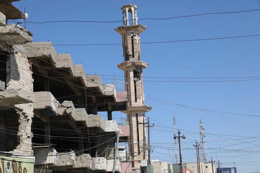 Foto tirada em 12 de março de 2024 mostra um prédio destruído em Fallujah, no Iraque. (Xinhua/Khalil Dawood)