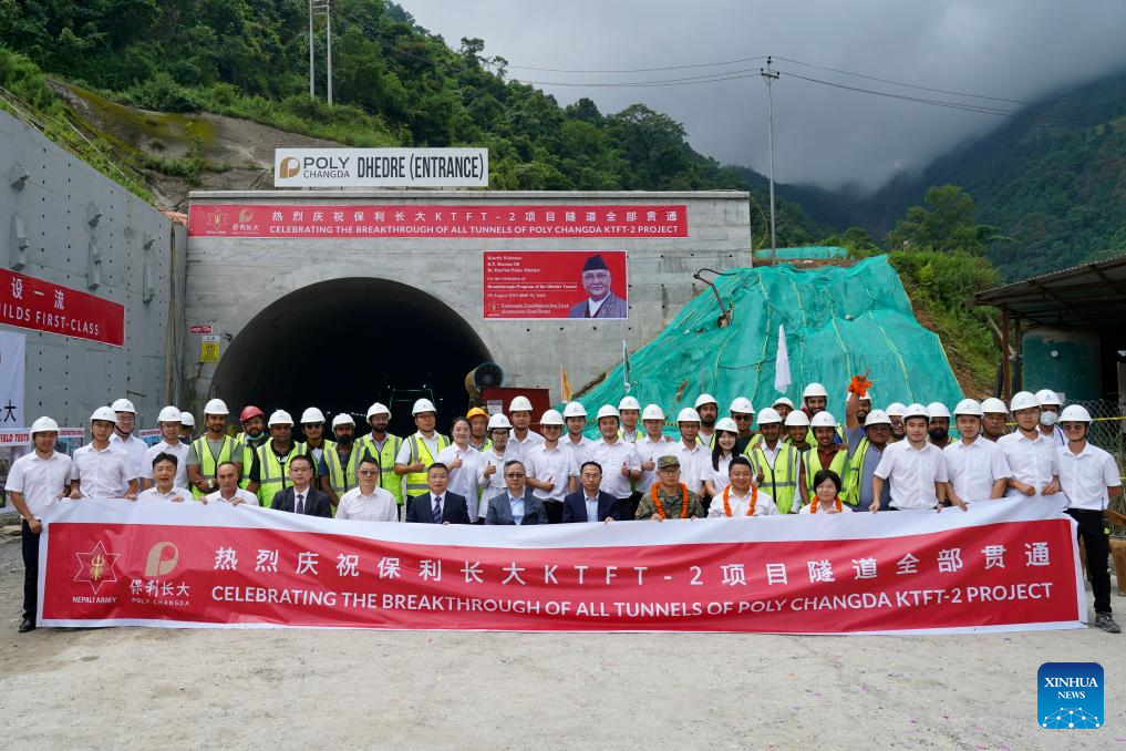 Katmandu, 5 ago (Xinhua) -- A escavação do último túnel foi concluída na segunda-feira para o projeto do pacote 2, construído por uma empresa chinesa no âmbito do projeto Katmandu-Terai/Madhesh de construção rápida, que o primeiro-ministro nepalês, Sharma Oli, descreveu como um "marco importante" para alcançar as metas de desenvolvimento do Nepal.