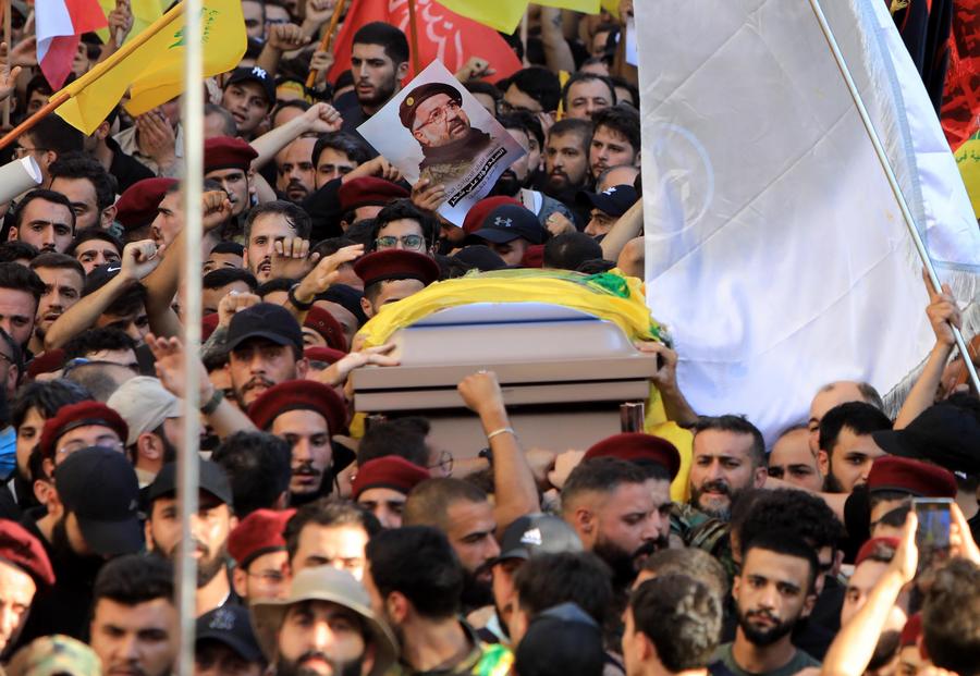 Apoiadores participam do funeral de Fouad Shokor em Beirute, Líbano, em 1º de agosto de 2024. (Xinhua/Bilal Jawich)