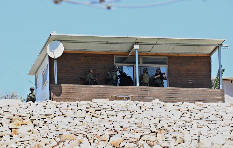 Tropas israelenses são vistas durante uma operação militar em Kafr Qud, perto da cidade de Jenin, na Cisjordânia, em 6 de agosto de 2024. (Foto de Ayman Nobani/Xinhua)